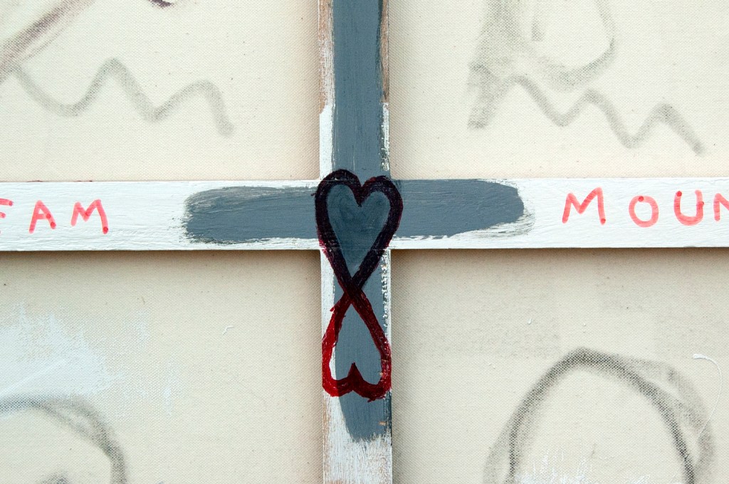 The painting features a portrait miniature of a duchess sporting a Gucci balaclava converted from a Glenfarclas Distillery bobble hat and the ‘Figure of Love & Hate’ – a figure of eight or infinity symbol, but with hearts.