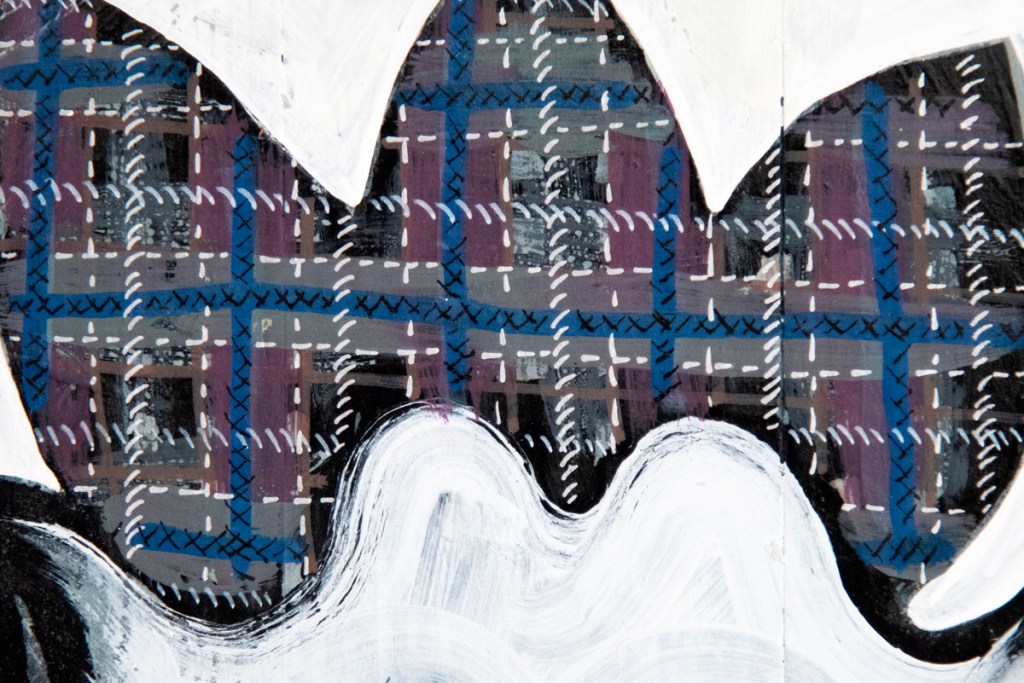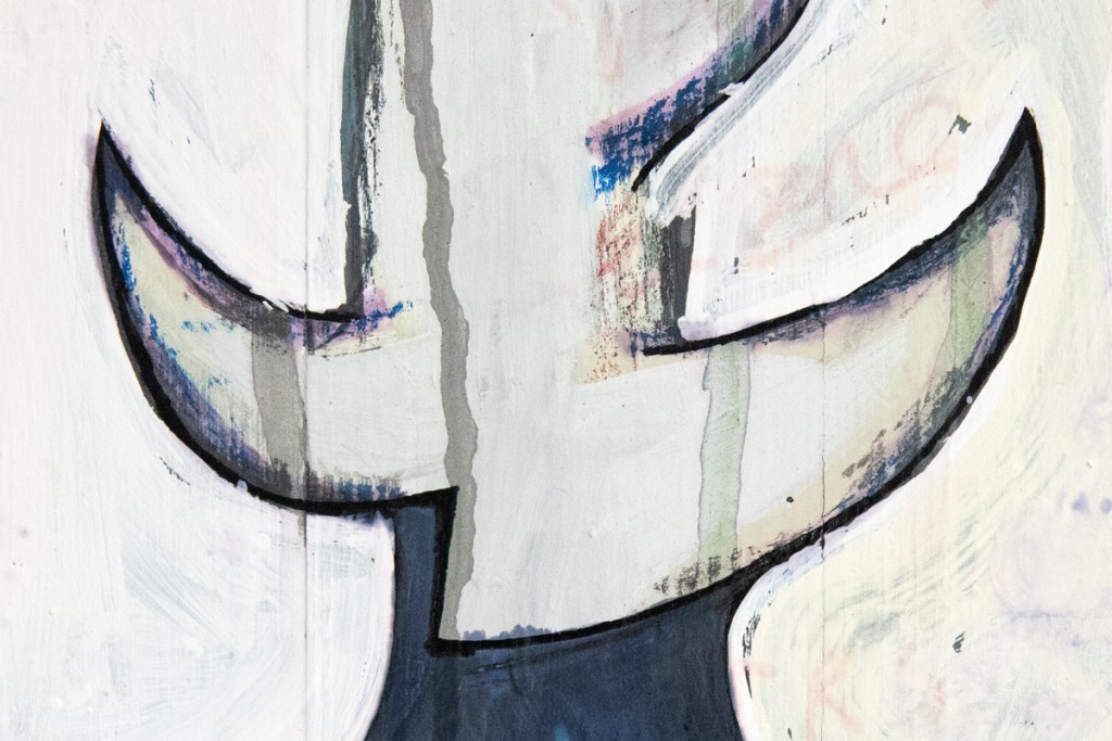 Emulsion, felt tip, paint pens and acrylic paint parkers on Logan Earth Ski skateboard deck (1975)