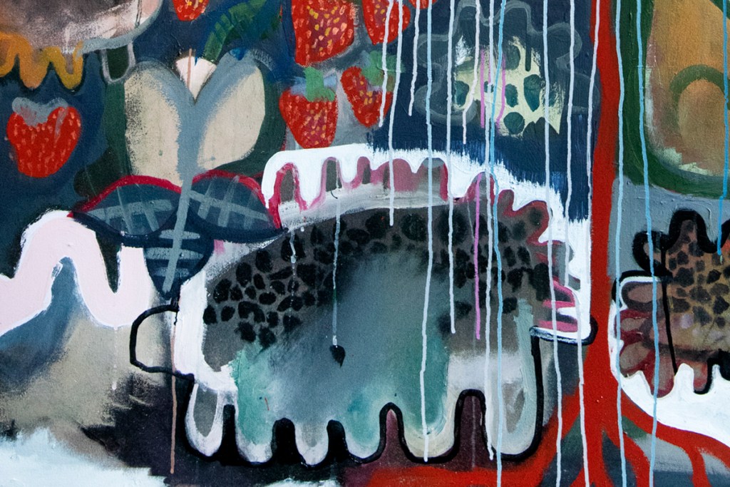The second panel from the Garden Pentaptych, featuring strawberries, roses and decaying sunflower heads.