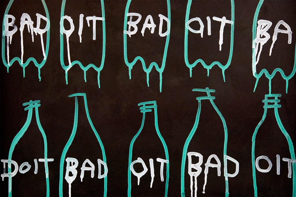March 4, 2025June 9, 2025Painting Recycling Ten Green Bottles Paint pens and oil on wood in wood frame. 85x77cm £825 BUY + COLLECT Ten bottles of Badoit sparkling water hanging on a wall. Share this: Click to share on Facebook (Opens in new window) Facebook Click to email a link to a friend (Opens in new window) Email Click to share on WhatsApp (Opens in new window) WhatsApp Click to share on Threads (Opens in new window) Threads Like Loading... Related