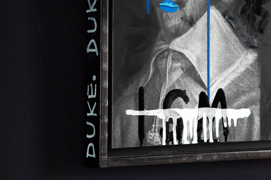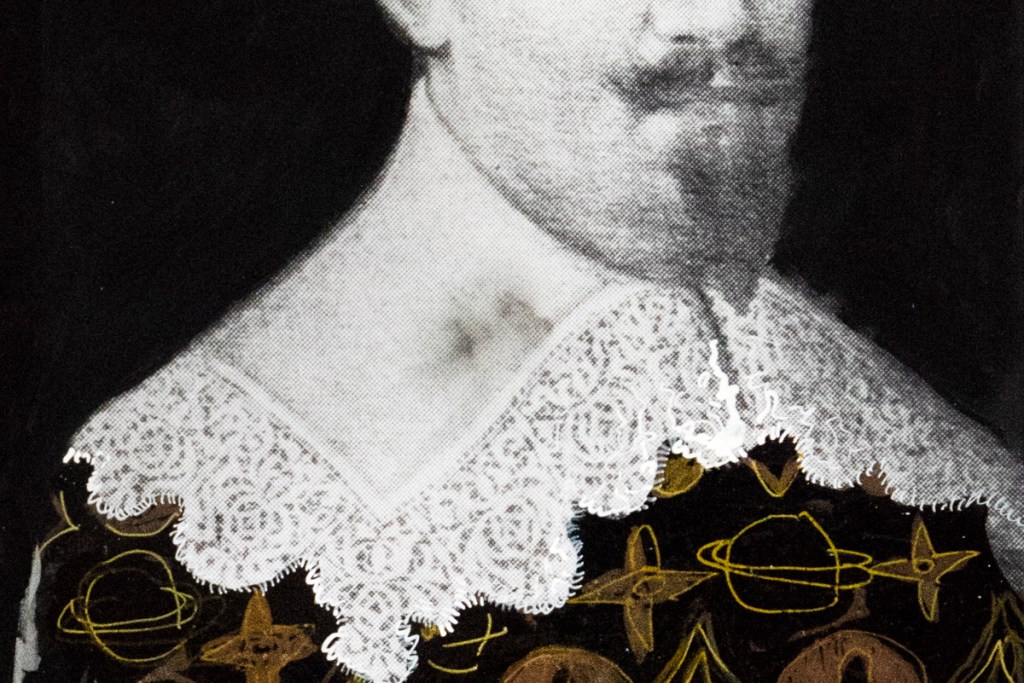 Fast forward 350 years to a school in England – in this moment of humorous vandalism, it is now a school girl who has power over them. In an artwork that has become a type of posthumous collaboration, their original marks have been accentuated in light blue – another layer of defacing has been added by the artist.