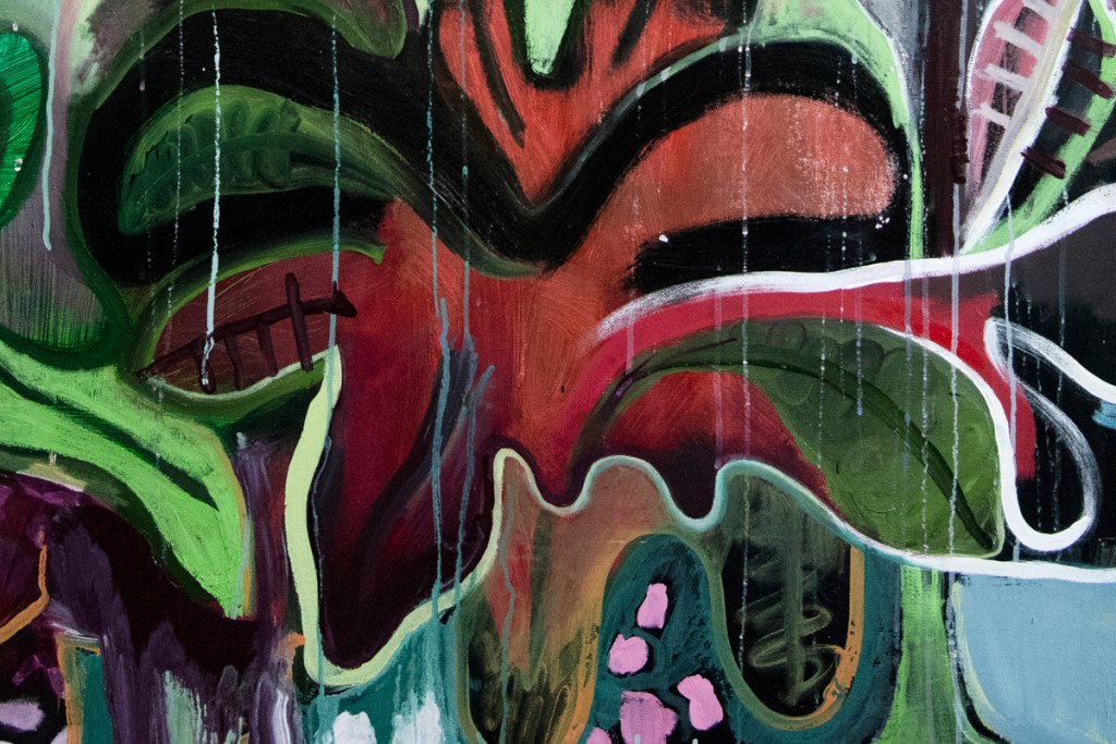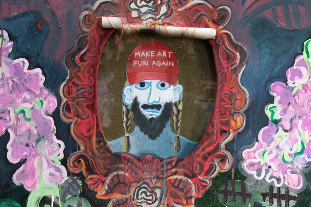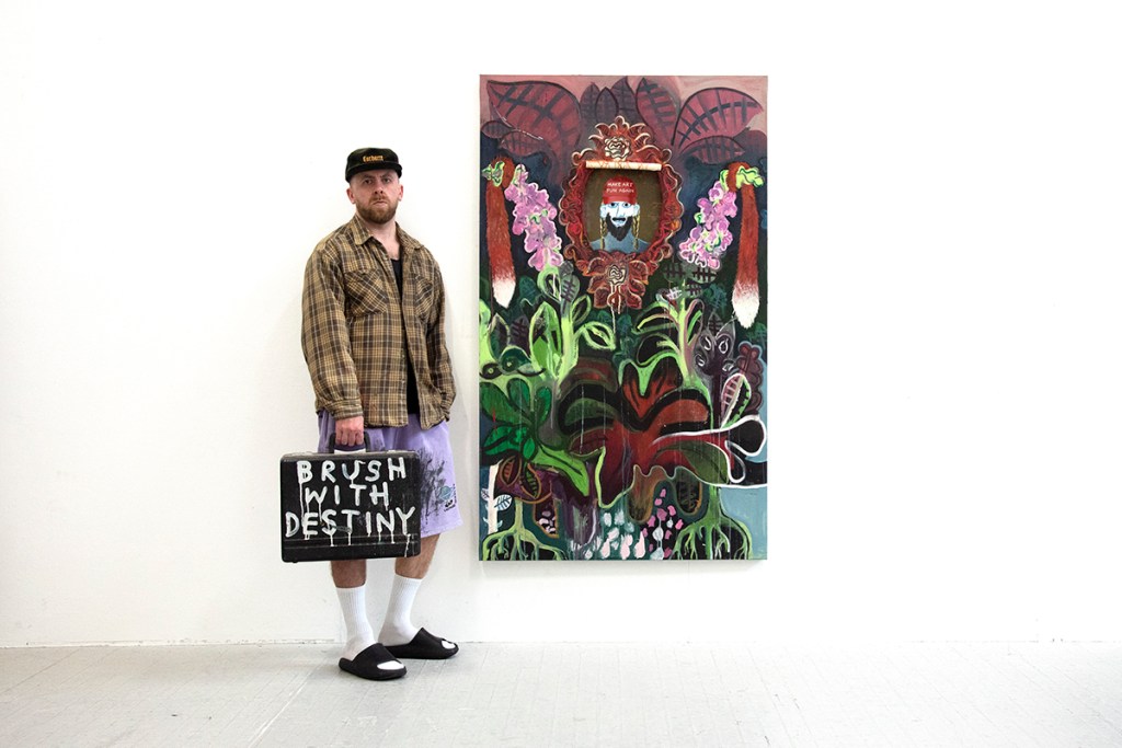 Formerly the 1.7x5m painting which provided the background for the photographic portraits of academicians made during the Court Painter Residency at the Royal West of England Academy of Art, reworked as a pentaptych. Each panel represents both the constant growing and dying flora (plants and flowers) and the theatre of fauna (animals) within a garden. When fully assembled it is an altarpiece to what one might call ‘gardening as method’.
